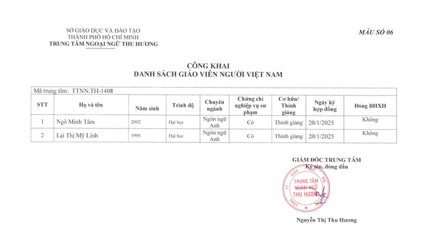 6. DANH SÁCH GIÁO VIÊN NGƯỜI VIỆT NAM