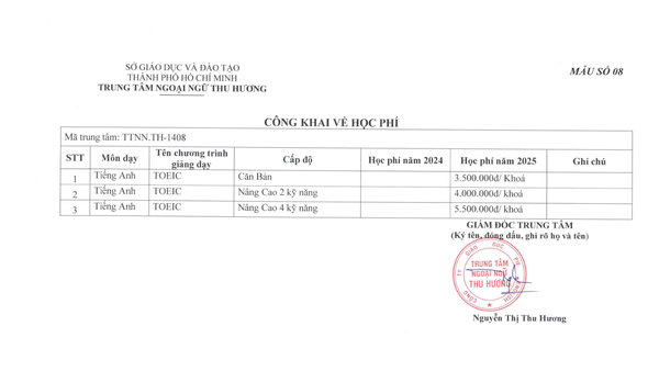 8. CÔNG KHAI VỀ HỌC PHÍ