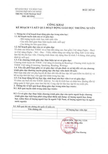 4. KẾ HOẠCH VÀ KẾT QUẢ HOẠT ĐỘNG GIÁO DỤC THƯỜNG XUYÊN