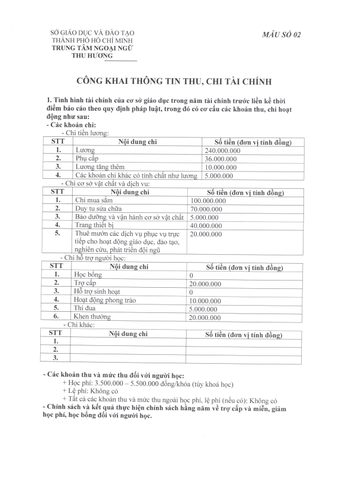 2. THÔNG TIN THU, CHI TÀI CHÍNH