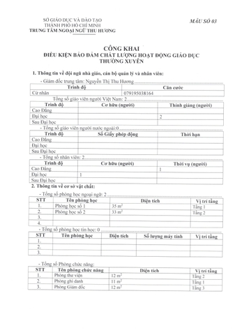 1. THÔNG TIN CHUNG VỀ CƠ SỞ GIÁO DỤC